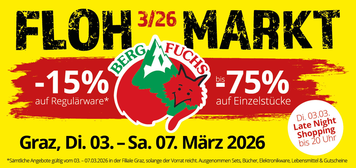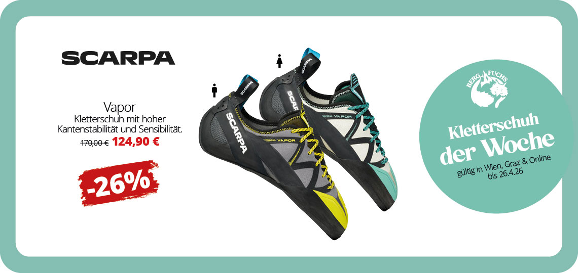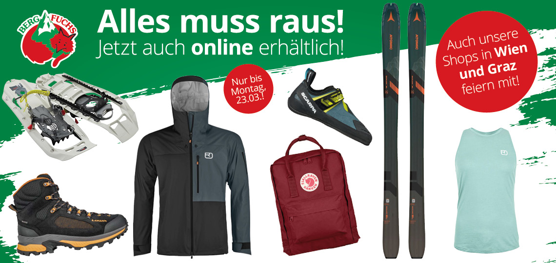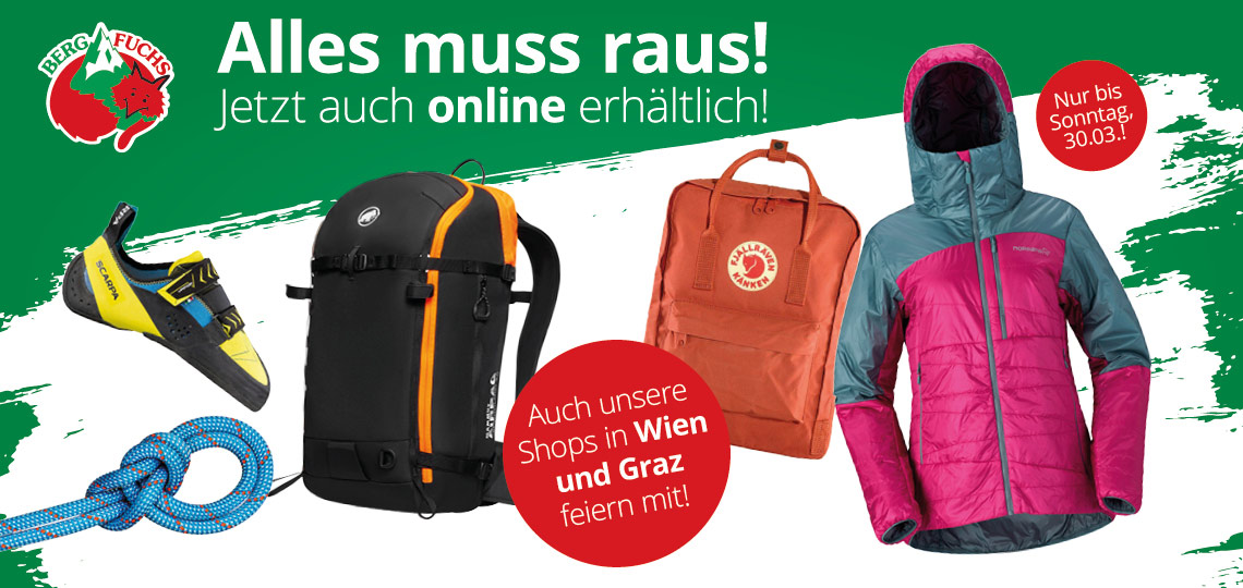 Der BERGFUCHS Online Shop ist die TOP-Adresse, wenn es um deine Bergsport-Passion geht! Hier kannst du sicher und bequem deine Ausrüstung und Bekleidung für Bergsport kaufen und dich dabei beraten lassen: Sportklettern, Alpinklettern, Bouldern, Bergsteigen, Hochtouren, Wandern, Trekking, Expeditionen, Klettersteigen, Freeriden oder Skitouren - Wir führen die richtige Outdoor-Bekleidung und Ausrüstung für deine Abenteuer. Im Bergfuchs Online Shop, in unserem Outdoor Outlet oder in unseren Filialen (Wien und Graz) findest du eine große Auswahl an hochwertigen Bergsportprodukten bekannter Marken.