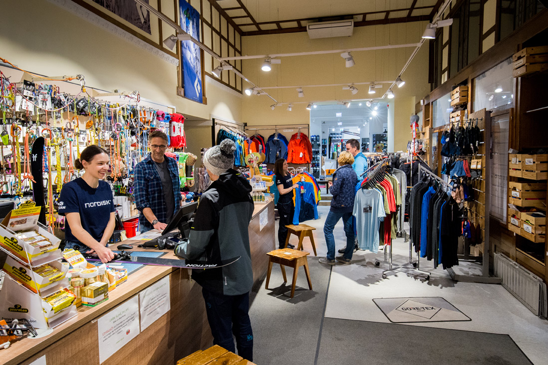 Das ändert sich schlagartig, als der Kaufmann KommR Ing. Karlheinz Schwenk auf der Suche nach einem vielversprechenden Investment auf die beiden ambitionierten Alpinist*innen Karin Fuchs und Fritz Milz vom Alpenverein Austria trifft und mit ihnen gemeinsam ein klassisches Startup gründet: Einen Bergsportladen, der sich seither einer einzigen Sache verschrieben hat – die beste Bergsportausrüstung mit der besten Fachberatung in Wien zu verkaufen. Ohne Kompromisse, ohne sich an Sporthandelsketten anzubiedern und ohne das Sortiment mit Taucherbrillen oder Fell-Moonboots zu verfälschen.