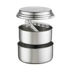 Die Alpine StowAway Pots Edelstahltöpfe von MSR halten häufige Nutzung aus und stellen eine hochwertige, strapazierfähige Kochgeschirroption dar. Sie sind ideal für Pfadfinder und Campinganfänger sowie Reisende unter Sparzwang geeignet. Leicht zu hebender Scharniergriff lässt sich über den passgenauen Deckel klappen, um diesen zu befestigen.