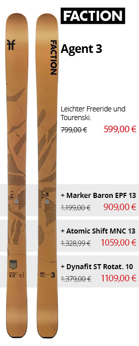 Bergfuchs bietet Ski mit Bindungen im SET günstiger an - bestimmte Ski-Sets bieten wir auch mit Fell (siehe Hinweis "Set mit Fell") oder mit Fell-Option ("Aufpreis Fell...") an. Sets mit Alpinbindung sind auf Anfrage möglich. Gerne stellen wir bei der Montage die Bindung für Sie ein - bitte senden Sie uns im Bestellkommentar Ihre Angaben zur Körpergröße, Gewicht, Schuhsohlenlänge und zum Fahrkönnen (mäßig, fortgeschritten, professionell).